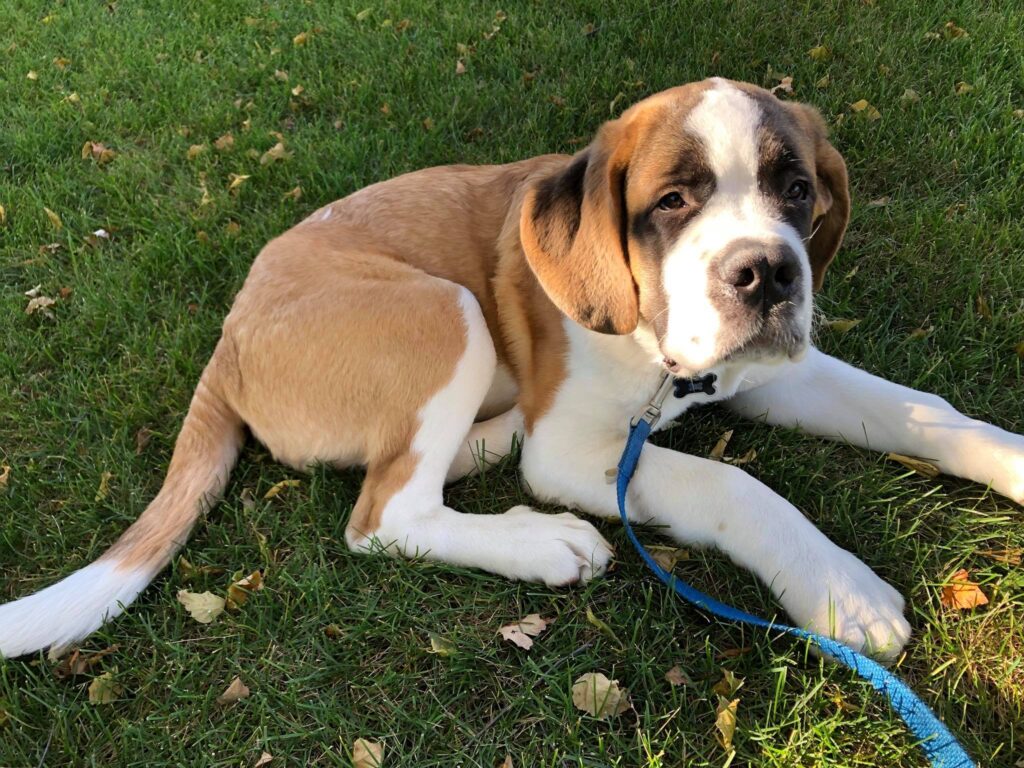 Mudge the St. Bernard from Chanhassen is a DogWatch dog, but his family didn’t always work with DogWatch of the Twin Cities. With their previous dog, Mudge’s parents bought a dog fence from another company and it worked well to keep that dog in the yard. When they got Mudge, though, they decided to call us at DogWatch to help train him.